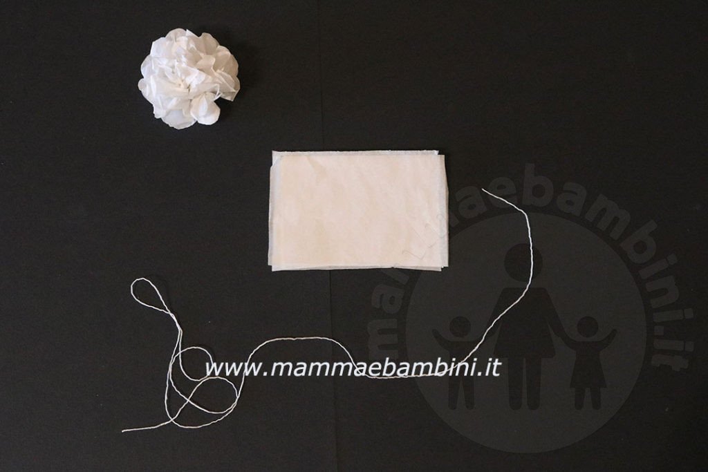 5) piegare a fisarmonica e legare al centro con del filo (potete al centro fare delle incisioni). Aprire le due ali e alzare delicatamente verso l’alto ogni strato fino a formare il fiore.