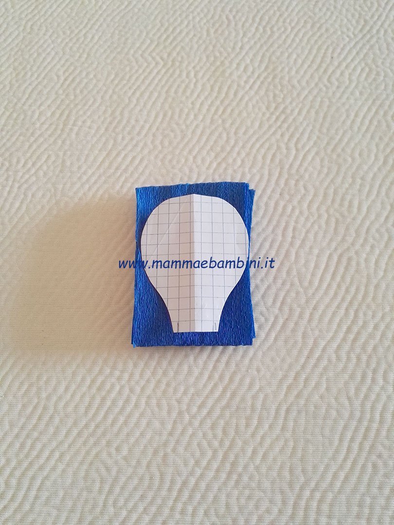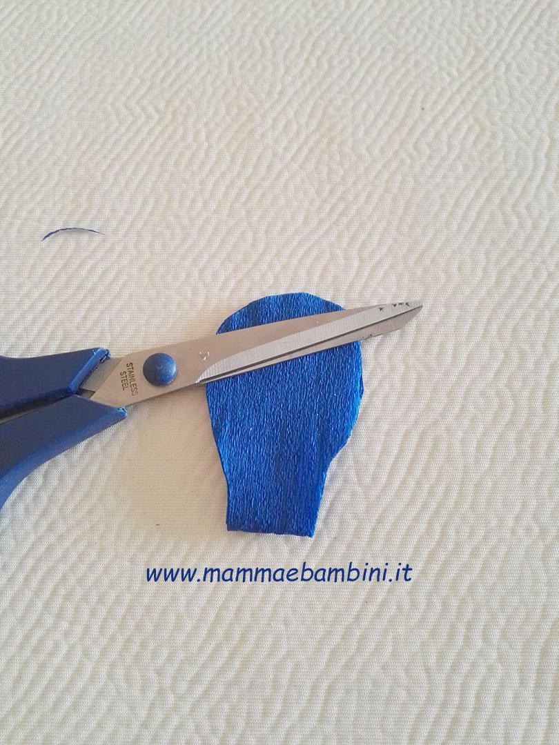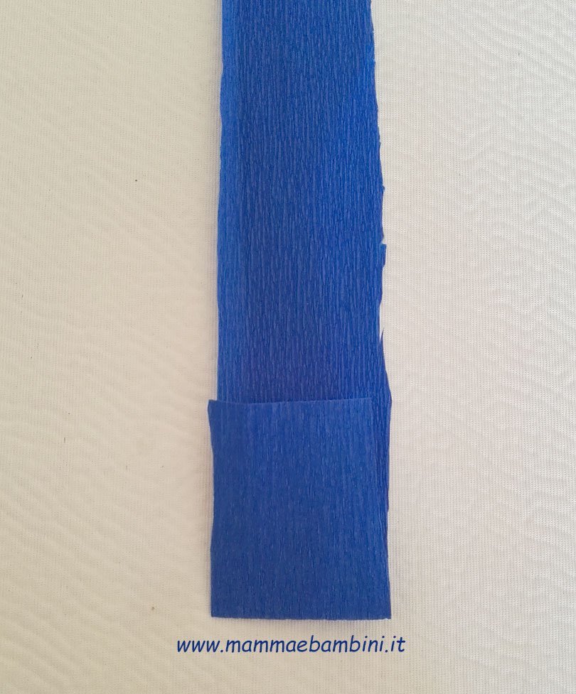1) ritagliare una striscia di carta crespa e piegare su se stessa formando un rettangolo (la grandezza dar la misura al petalo)